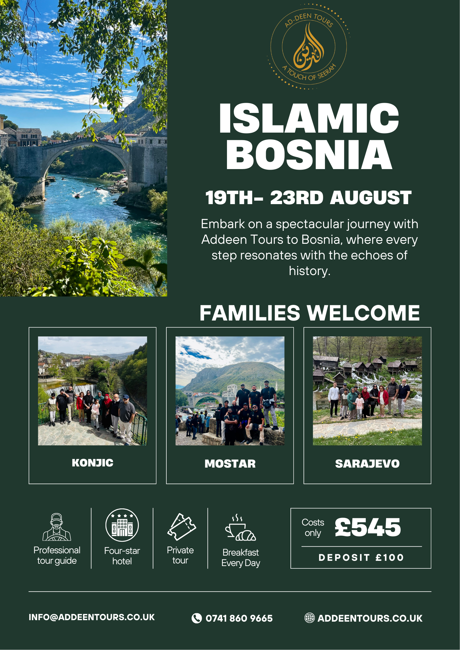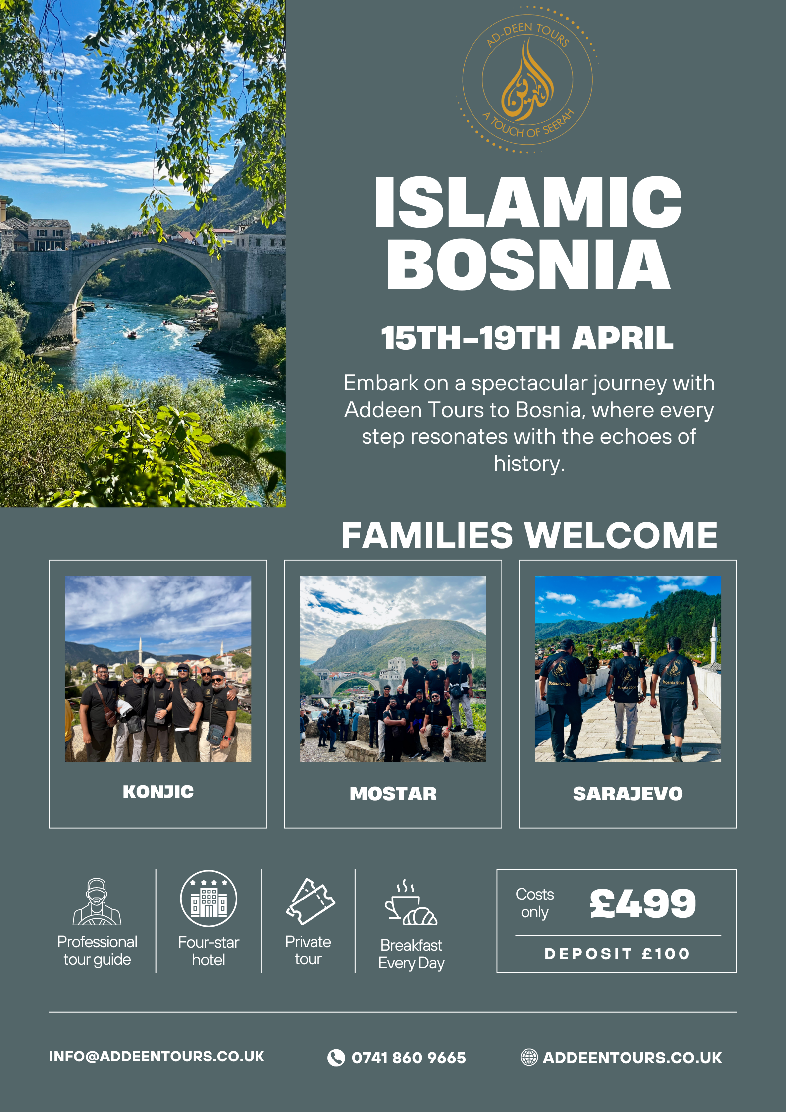 Embark on a spectacular journey with Addeen Tours to Bosnia, where every step resonates with the echoes of history. Our meticulously designed itinerary ensures a blend of cultural immersion along side educational and spiritual insights.
