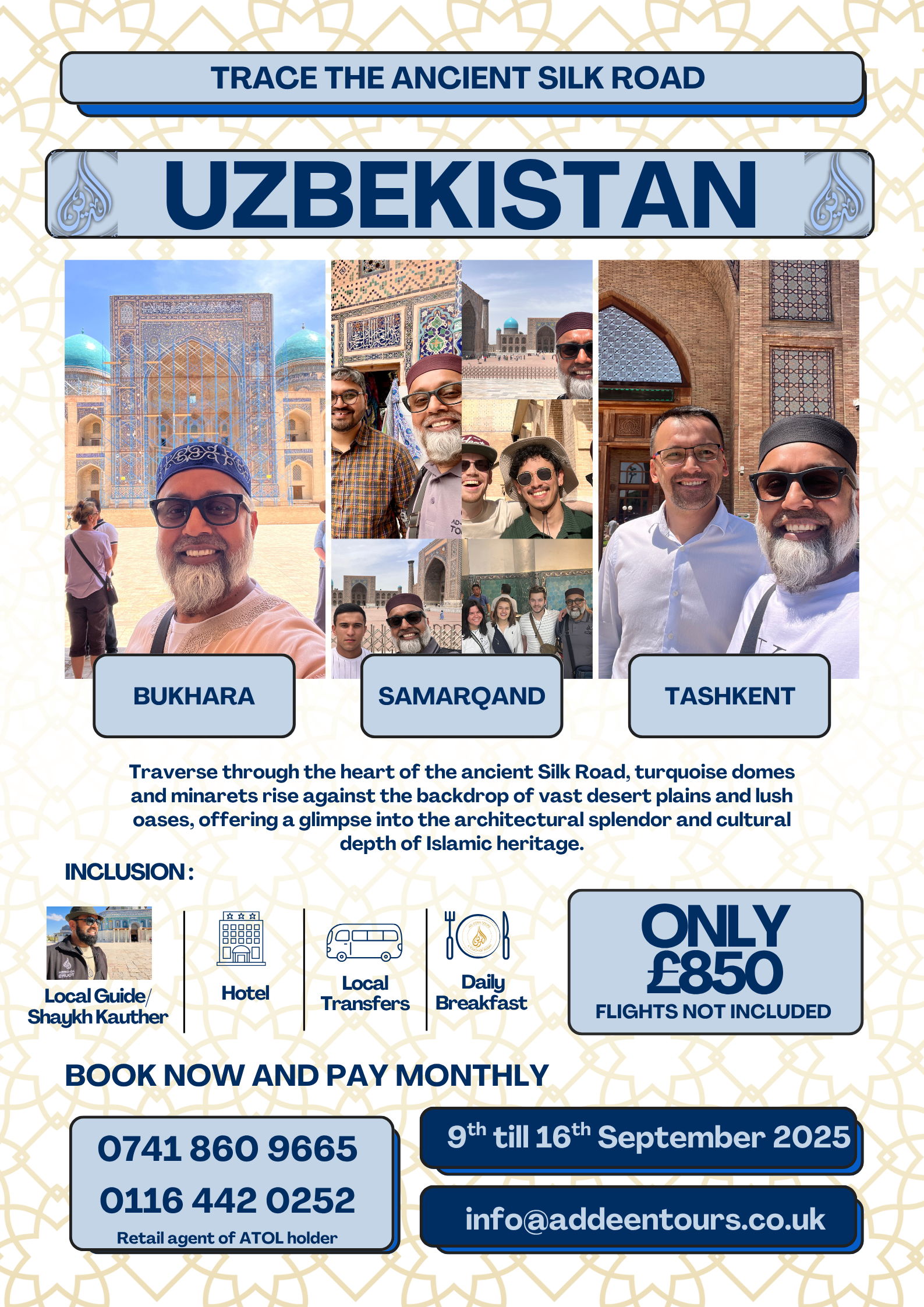Addeen Tours will lead you to Uzbekistan's most breathtaking sights, unveiling the grandeur of magnificent mosques, madrassas, and exquisite tilework - each a testament to the glory of the Islamic world.